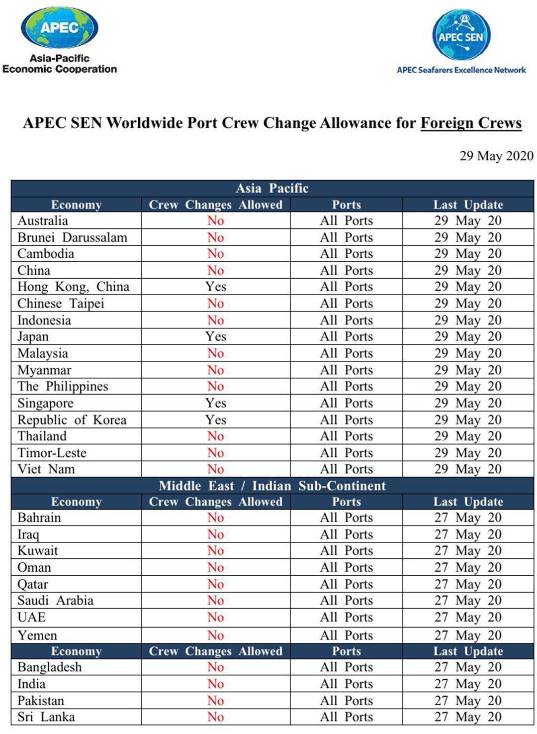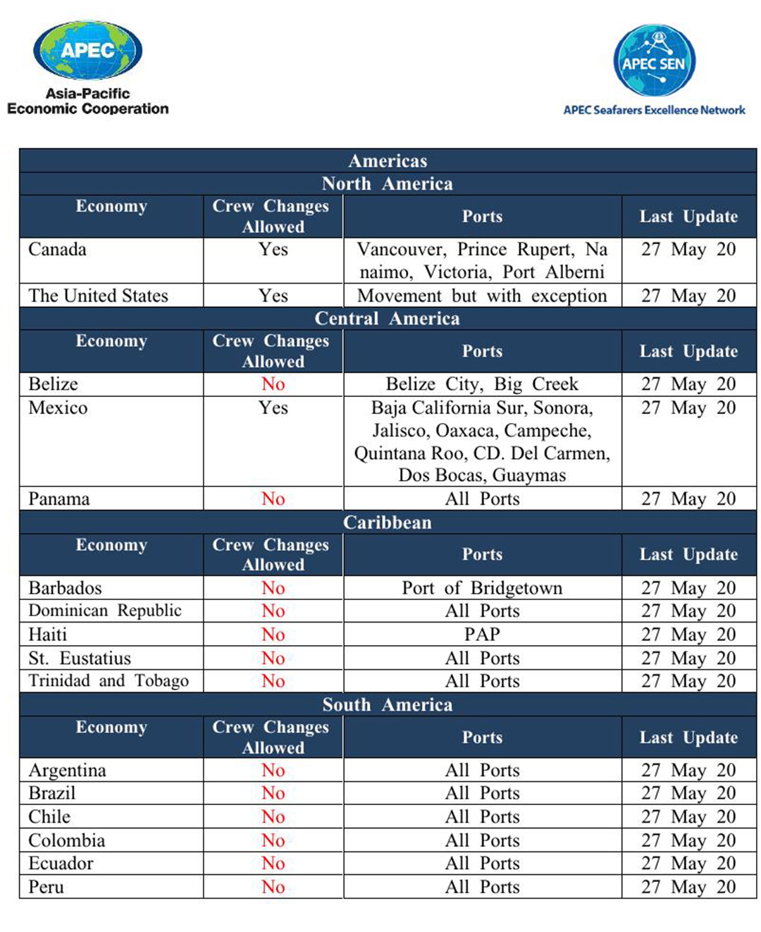Секретариат форума «Азиатско-Тихоокеанское экономическое сотрудничество» (АТЭС) сформировал обновленный список портов с учетом возможности смен моряков. Документ распространили через транспортные ведомства всем заинтересованным сторонам.