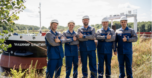 По материалам volgaflot.com; на фото: экипаж теплохода «Владимир Ерыгин» (volgaflot.com)