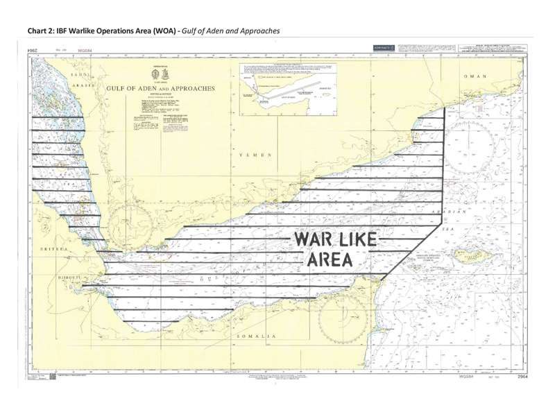 1. Зона боевых действий IBF – 12 морских миль от материкового побережья Йемена, включая все порты, за исключением транзитного коридора морской безопасности (MSTC) в Красном море (диаграммы 1 и 2). Действует до 25 мая 2026 года с возможностью продления.