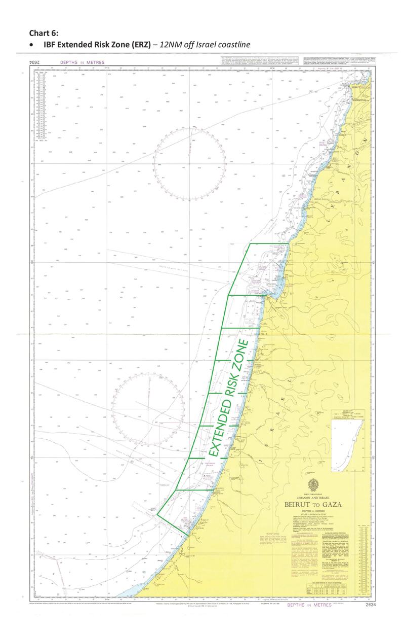 10. Расширенная зона риска IBF – 12 морских миль от побережья Израиля (диаграмма 6). Действует до 30 марта 2026 года с возможностью продления.