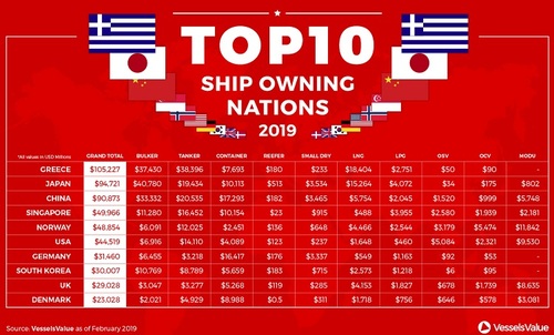 VesselsValue подвели итоги 2018 года и выяснили, какие государства на сегодняшний день обладают самым крупным флотом. Как и в прошлом году, десятку возглавила Греция, однако Китай отметился самыми высокими показателями по росту стоимости судов.