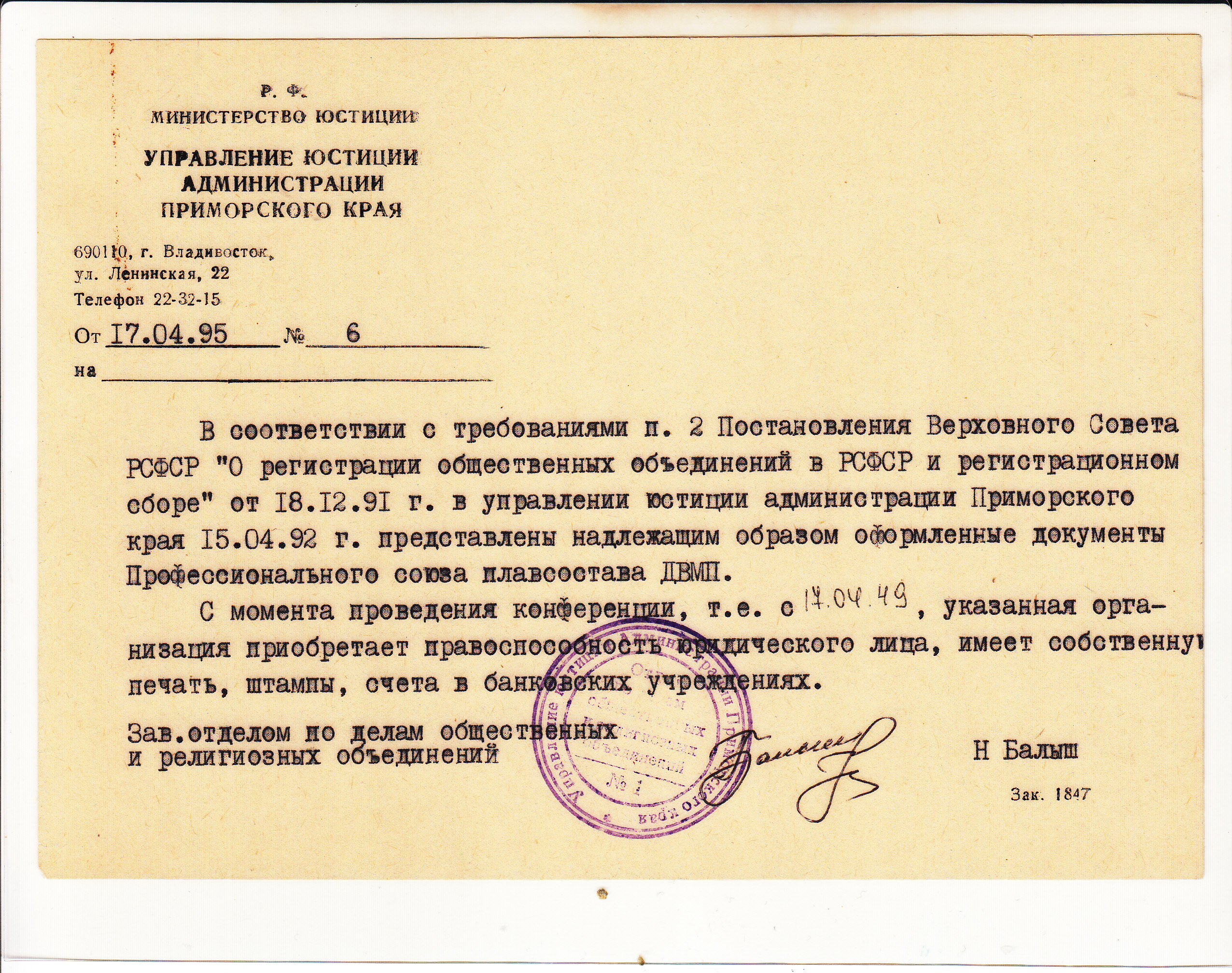 В 1991 году, когда проходила отчетно-выборная конференция ППО, ее делегаты заявили о желании войти в состав в Российского профсоюза моряков (РПСМ) – молодого и независимого объединения работников флота. По признанию делегатов, прежние профсоюзные структуры не соответствовали духу времени и, по сути, не защищали права и интересы плавсостава пароходства. В течение последующих нескольких лет работа организации была переориентирована и направлена на развитие инструментов защиты, главным из которых стали цивилизованные переговоры и заключение коллективных договоров.