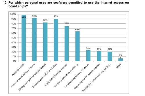 Также исследование выяснило две основные причины отсутствия доступа в интернет: многие судовладельцы назвали среди них высокую стоимость и беспокойство по поводу влияния технологии на сон и отдых.
