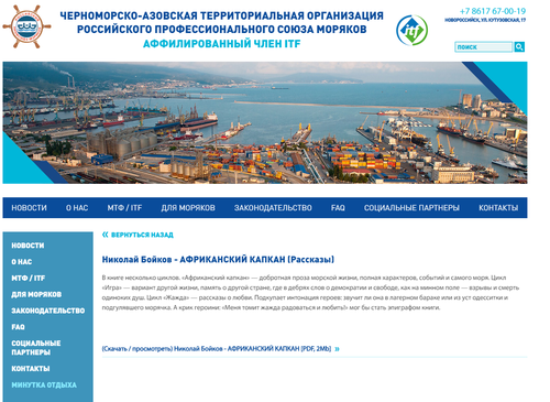 Сайт Черноморско-Азовской территориальной организации Российского профсоюза моряков (ЧАТО РПСМ) стал площадкой для реализации творческих амбиций моряков. Здесь появился новый раздел «Минутка отдыха», где будут публиковаться их работы.