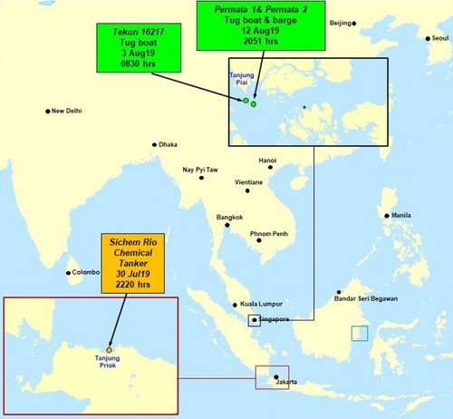 Два других происшествия произошли во время буксировки барж в Сингапурском проливе. Примечательно, что оба инцидента случились к югу от Танджунг Пиай, Малайзия: в том и другом случае люди, высаживались на суда с небольших лодок, крали металлолом и сбегали. Возможно, это дело рук одной и той же преступной группировки.
