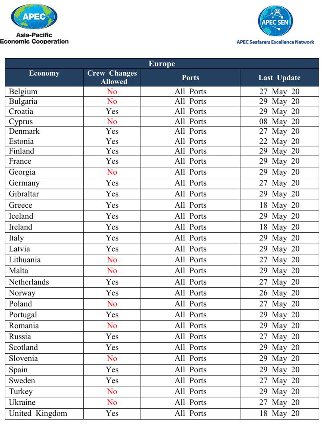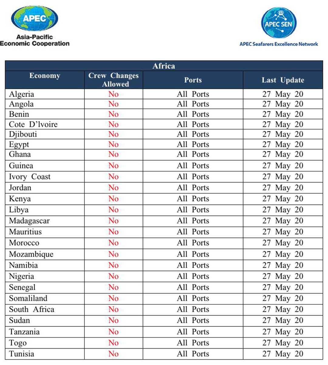 Секретариат форума «Азиатско-Тихоокеанское экономическое сотрудничество» (АТЭС) сформировал обновленный список портов с учетом возможности смен моряков. Документ распространили через транспортные ведомства всем заинтересованным сторонам.