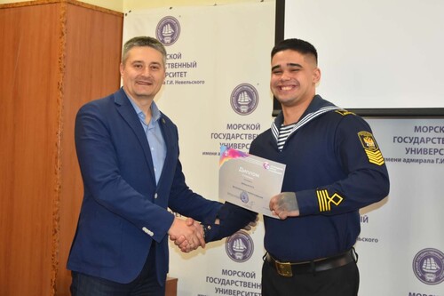 В МГУ им. адм. Г. И. Невельского состоялось награждение победителей 73-й Международной молодежной научно-технической конференции «Молодежь. Наука. Инновации». Диплом за третье место в номинации «Безопасность мореплавания» достался курсанту факультета судовождения и связи, члену цеховой профсоюзной организации первичной профсоюзной организации моряков г. Владивостока Российского профсоюза моряков в МГУ им. адм. Г. И. Невельского Максиму Добрунову.