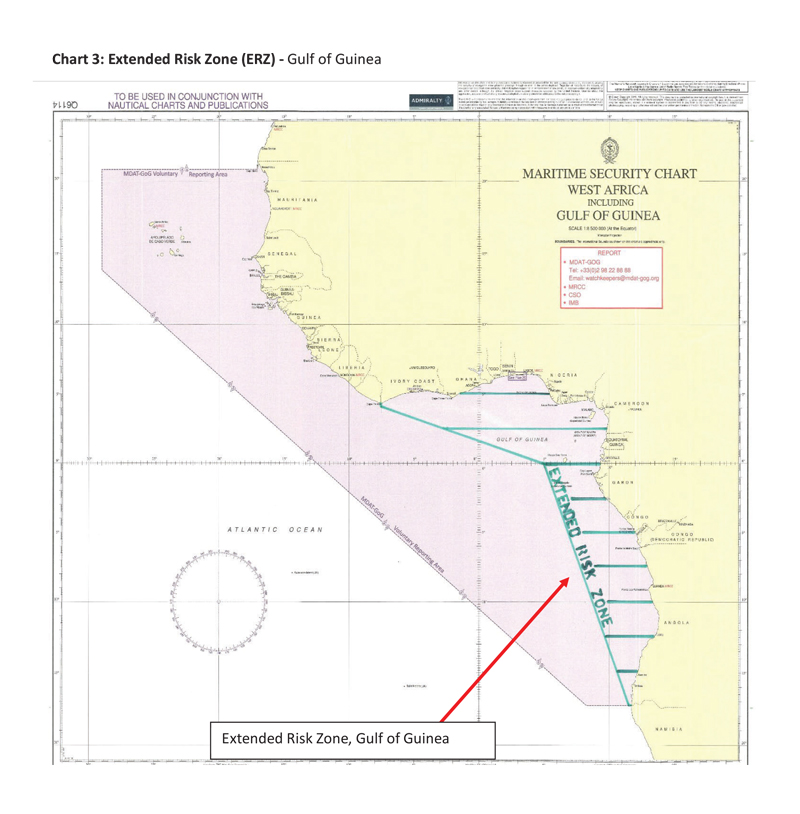 3. Расширенная зона риска IBF – Гвинейский залив от границы Либерии/Кот-д'Ивуара до 00°северной широты 005°восточной долготы до границы Анголы/Намибии (диаграмма 3). Действует до 25 мая 2026 года с возможностью продления.